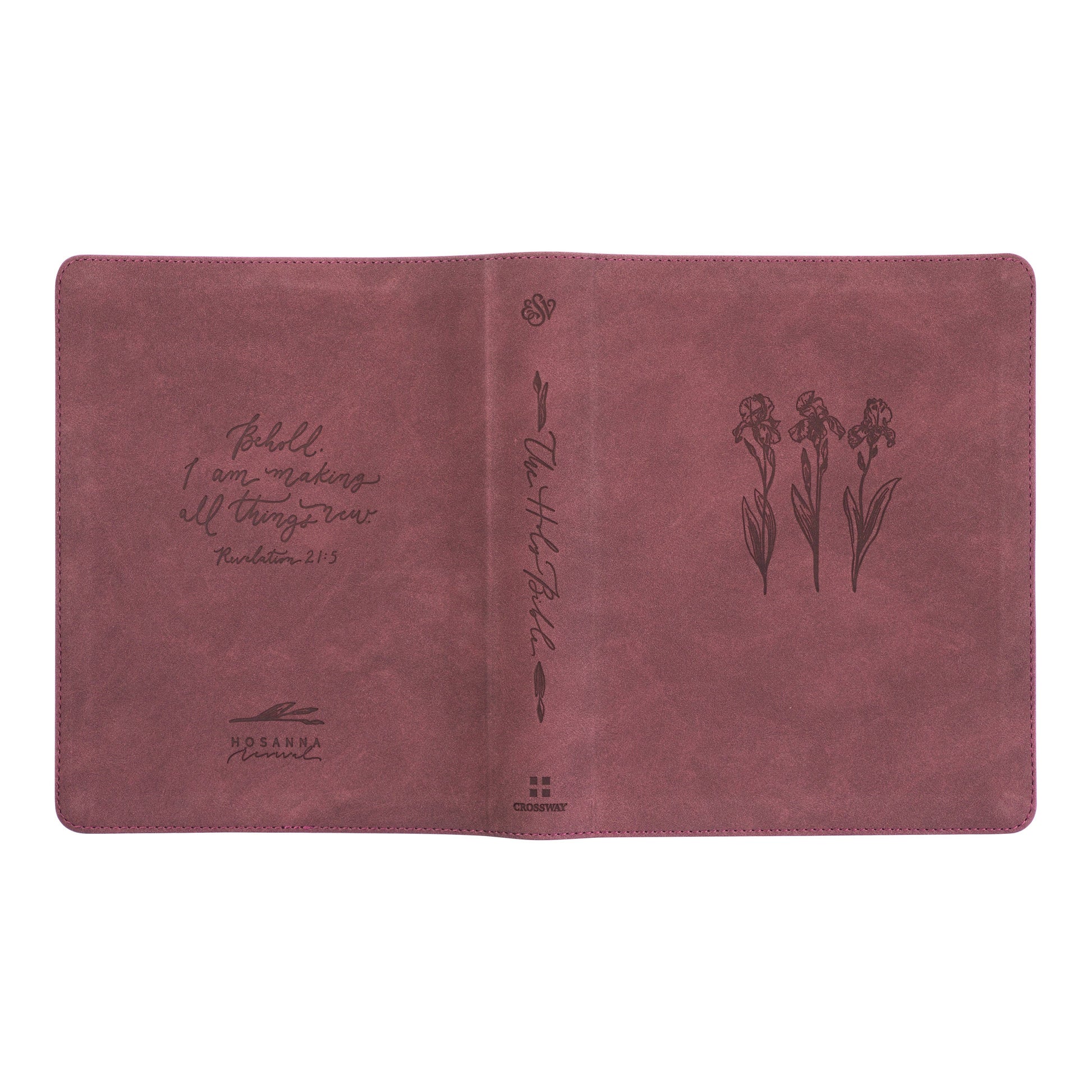Inspired by Helena, Montana—a breathtaking spot to enjoy Rocky Mountain Irises—this ESV journaling Bible is a rich mauve, soft-touch, treasure with engraved irises gracing the front cover. The words “Behold, I am making all things new” from Revelation 21:5 are scripted on the back as an encouraging reminder of God’s sovereign and redemptive heart. Our prayer for you would be that this Bible invites you into new depths of the Lord’s love for you and his desire to make you a new creation. Product Details - Translation: